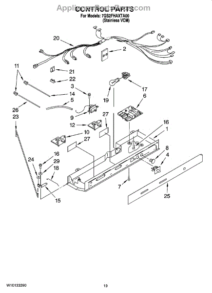 Replacement screw for securing appliance panels, mounting brackets, and internal assemblies. Restores tight connections when original screws are missing or damaged.