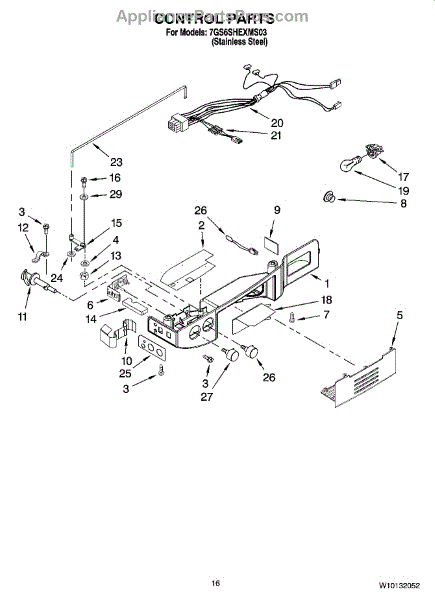 Parts for Whirlpool 7GS6SHEXMS03: 10 - Control Parts