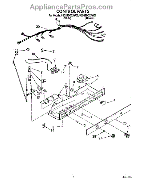 Parts for Whirlpool 8ED25DQXAW00: 12 - Control Parts