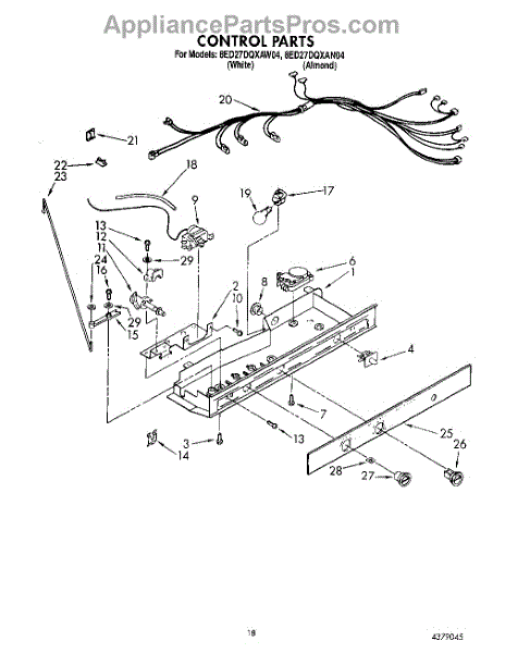 Parts for Whirlpool 8ED27DQXAW04: 11 - Control Parts