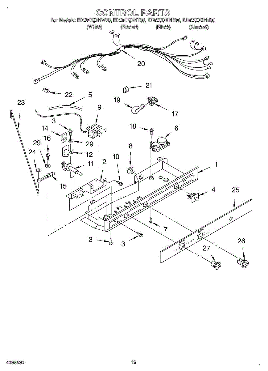 Wiring harness that connects to the refrigerator control box. Replace if wires are frayed, connectors are damaged, or harness is broken or missing.