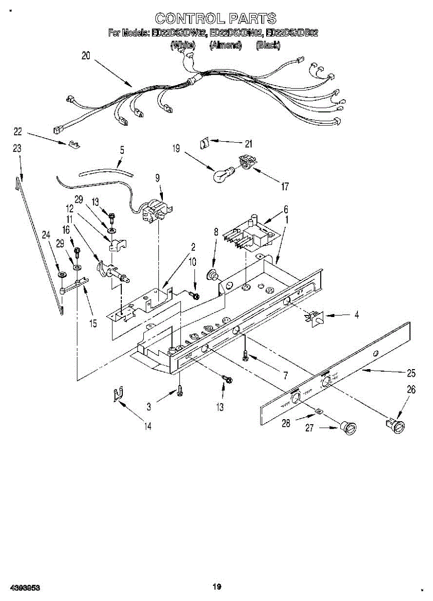 Parts for Whirlpool ED22DSXDW02: 12 - Control, Lit / Optional Parts