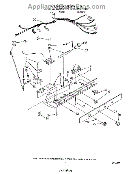 Parts for Whirlpool ED22GWXWW10: 12 - Control Parts