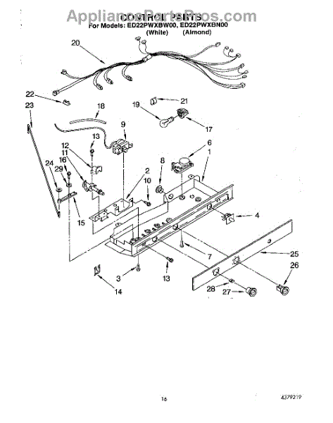 Parts for Whirlpool ED22PWXBW00: 11 - Control Parts