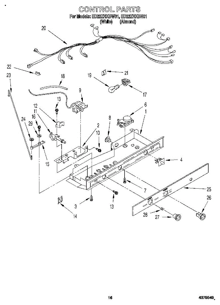 Parts for Whirlpool ED22ZRXBN01: 11 - Control Parts