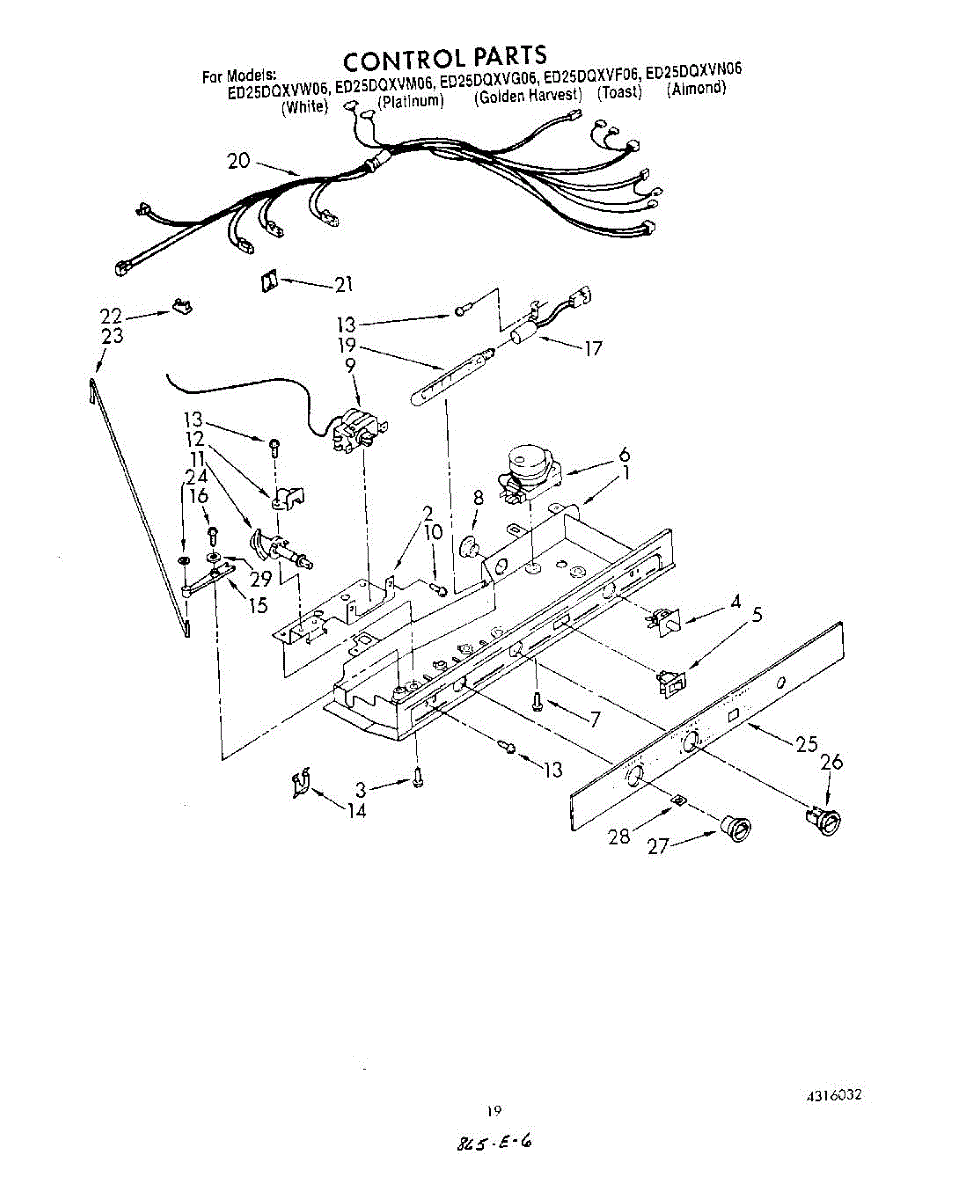 Parts for Whirlpool ED25DQXVF06: 12 - Control Parts