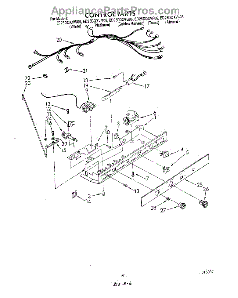 Parts for Whirlpool ED25DQXVG06: 12 - Control Parts