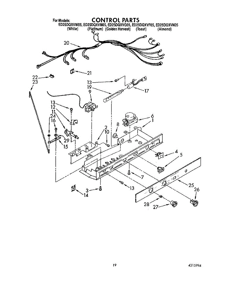 Parts for Whirlpool ED25DQXVM05: 12 - Control Parts