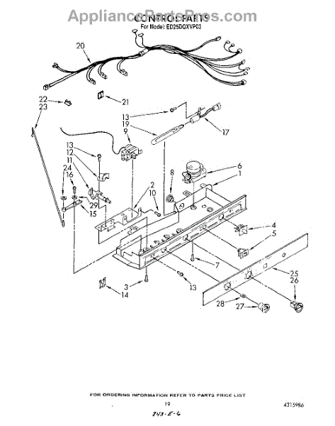 Parts for Whirlpool ED25DQXVP03: 12 - Control Parts