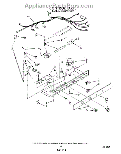 Parts for Whirlpool ED25DQXVS00: 12 - Control Parts