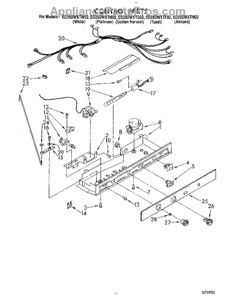 Parts for Whirlpool ED25DWXTG02: 12 - Control Parts