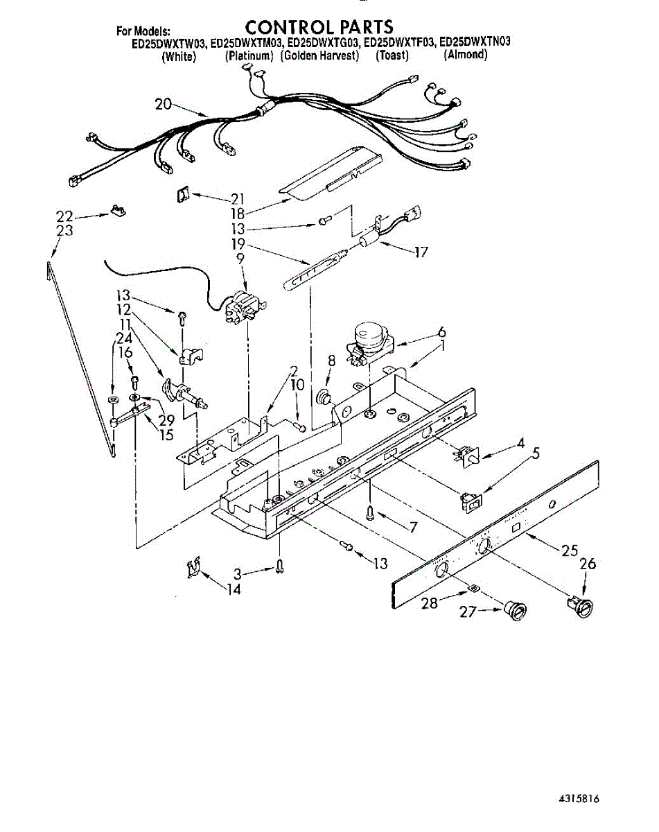 Parts for Whirlpool ED25DWXTM03: 12 - Control Parts