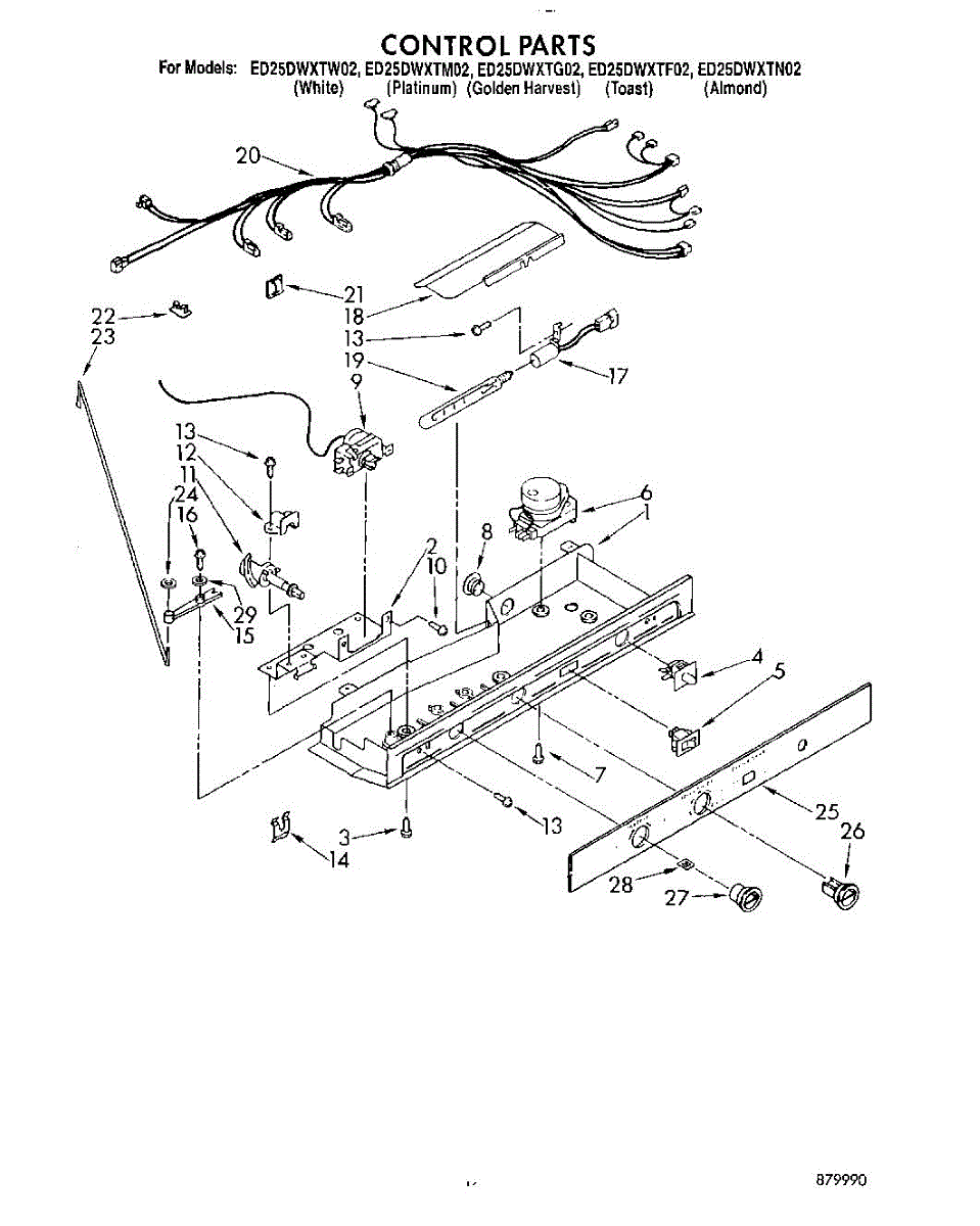 Parts for Whirlpool ED25DWXTW02: 12 - Control Parts