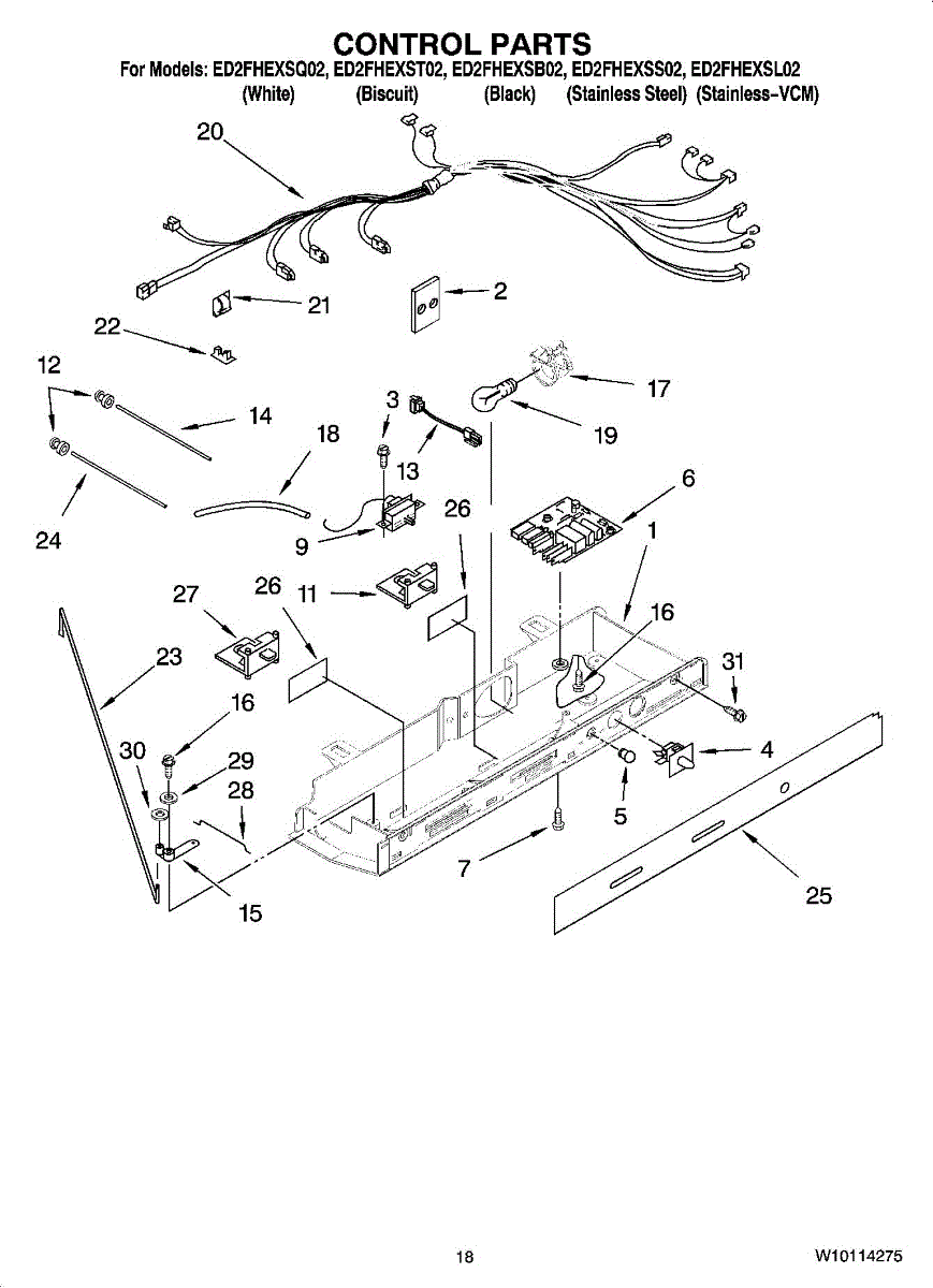 Parts for Whirlpool ED2FHEXSS02: 11 - Control Parts