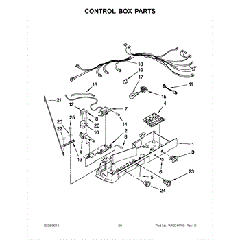 The Defrost Control Board is an OEM replacement part for Whirlpool refrigerators. This circuit board coordinates defrost heating cycles to remove built-up frost from evaporator coils. Causes relate to water damage following leaks, component failure due to power surges loosening connectors, or general component wear over time. Symptoms of issues include: