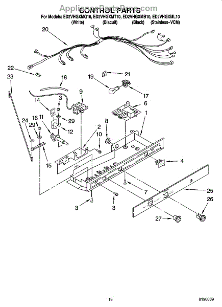 Parts for Whirlpool ED2VHGXMQ10: 11 - Control Parts