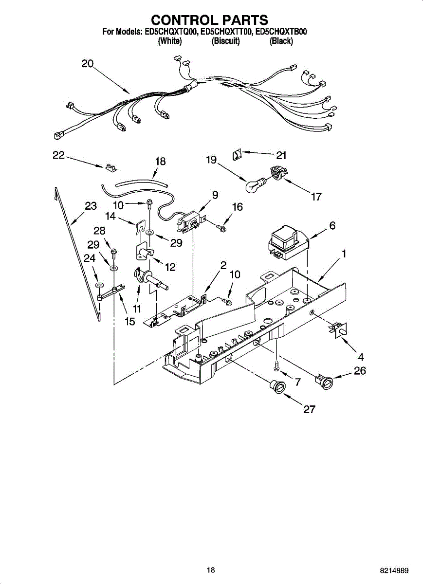Parts for Whirlpool ED5CHQXTQ00: 11 - Control Parts