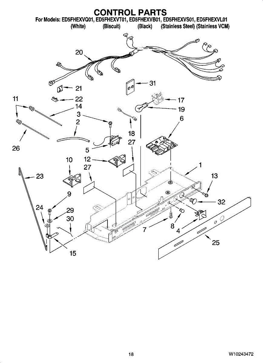 Parts for Whirlpool ED5FHEXVL01: 11 - Control Parts