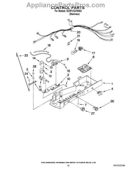 The Defrost Control Board is an OEM replacement part for Whirlpool refrigerators. This circuit board coordinates defrost heating cycles to remove built-up frost from evaporator coils. Causes relate to water damage following leaks, component failure due to power surges loosening connectors, or general component wear over time. Symptoms of issues include:
