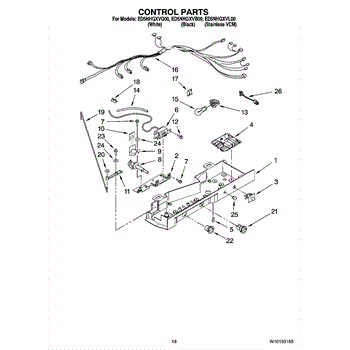 The Defrost Control Board is an OEM replacement part for Whirlpool refrigerators. This circuit board coordinates defrost heating cycles to remove built-up frost from evaporator coils. Causes relate to water damage following leaks, component failure due to power surges loosening connectors, or general component wear over time. Symptoms of issues include: