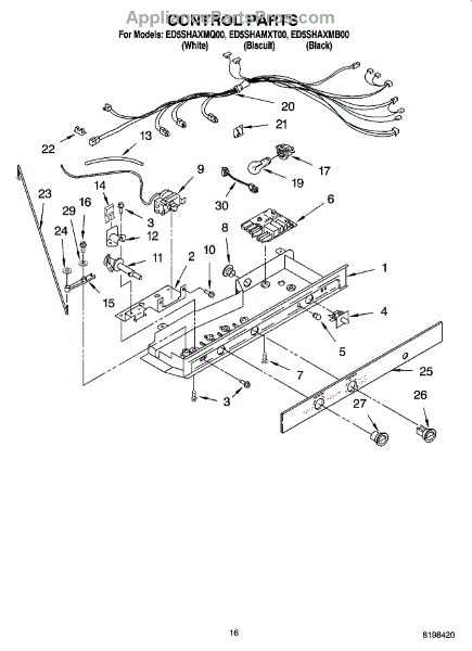 Parts for Whirlpool ED5SHAMXT00: 10 - Control Parts