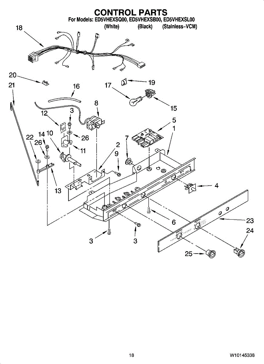 Parts for Whirlpool ED5VHEXSB00: 11 - Control Parts