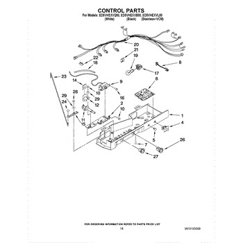 The Defrost Control Board is an OEM replacement part for Whirlpool refrigerators. This circuit board coordinates defrost heating cycles to remove built-up frost from evaporator coils. Causes relate to water damage following leaks, component failure due to power surges loosening connectors, or general component wear over time. Symptoms of issues include: