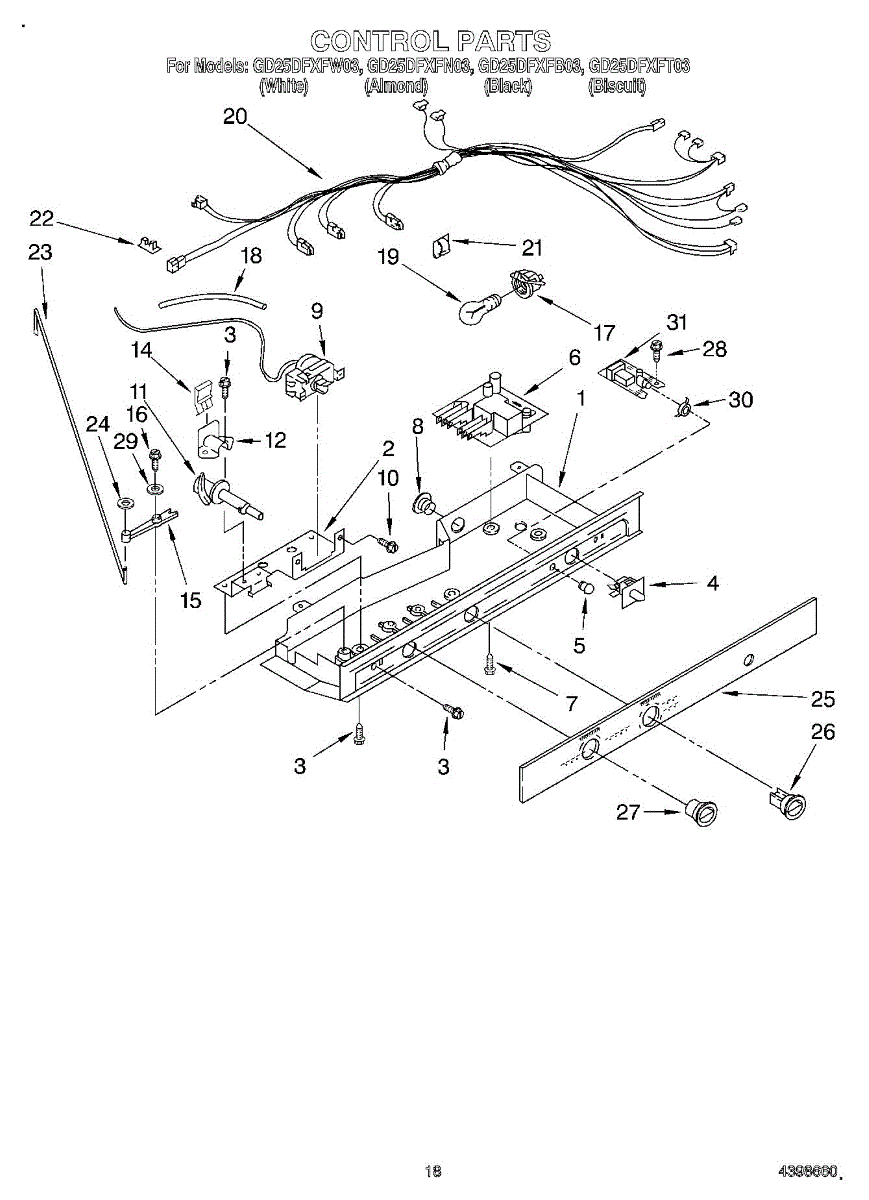 Parts for Whirlpool GD25DFXFW03: 11 - Control Parts