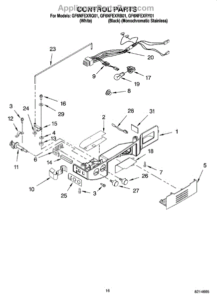 Parts for Whirlpool GF6NFEXRB01: 10 - Control Parts
