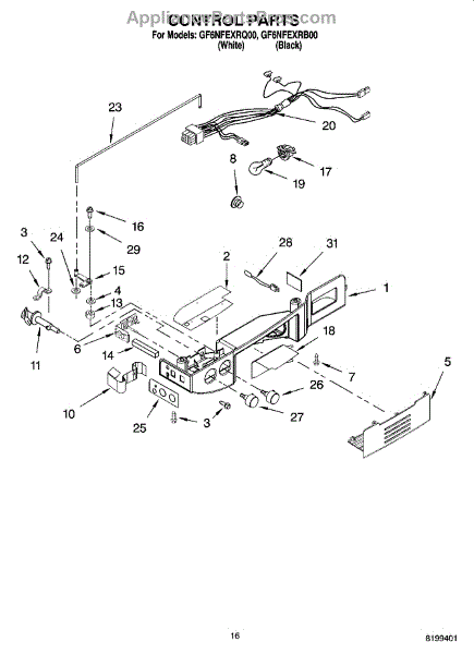 Parts for Whirlpool GF6NFEXRQ00: 10 - Control Parts