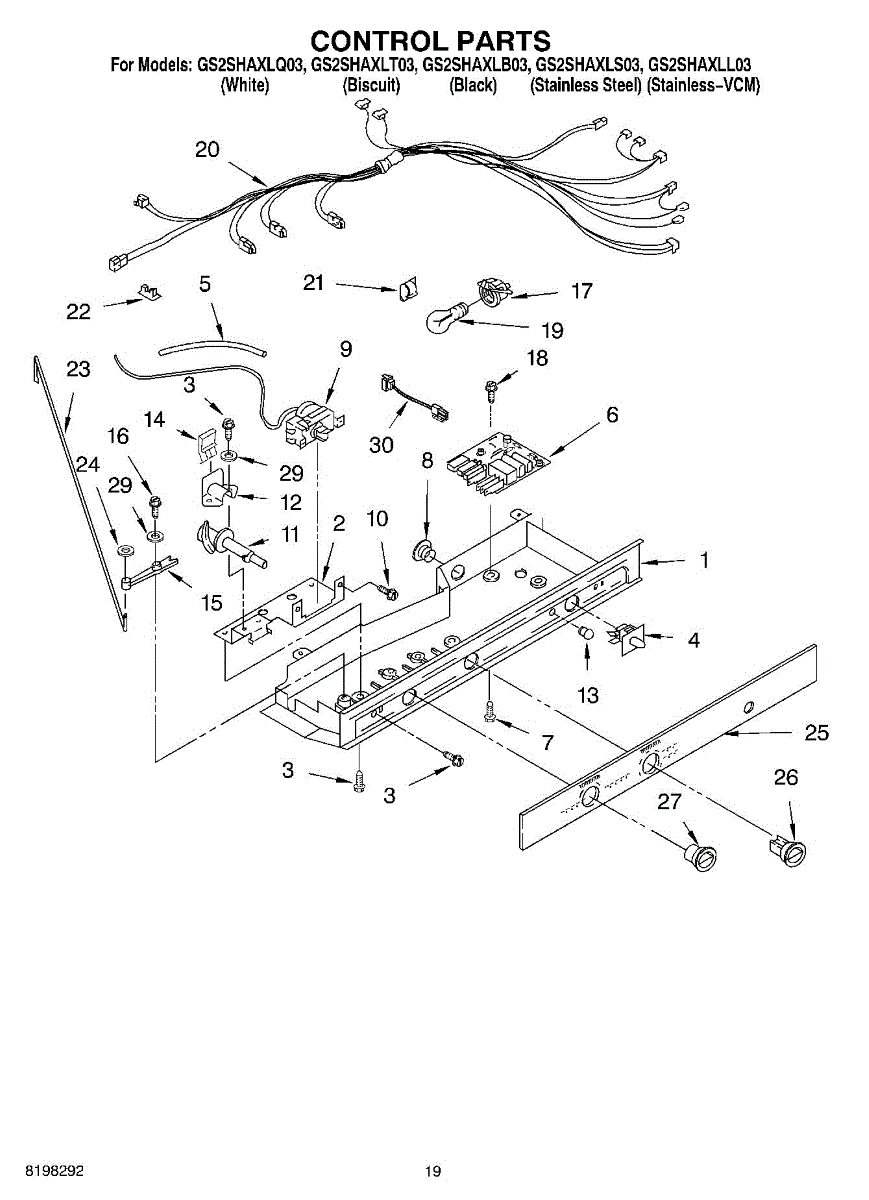 Parts for Whirlpool GS2SHAXLS03: 11 - Control Parts