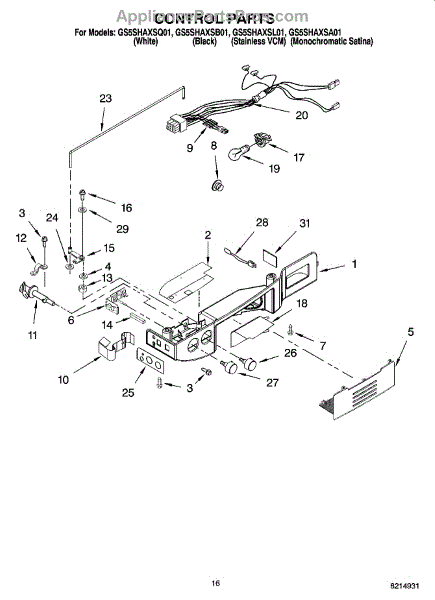 Parts for Whirlpool GS5SHAXSL01: 10 - Control Parts