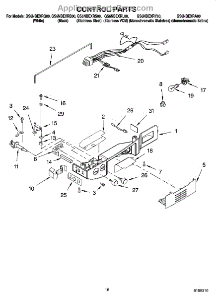 Parts for Whirlpool GS6NBEXRB00: 10 - Control Parts