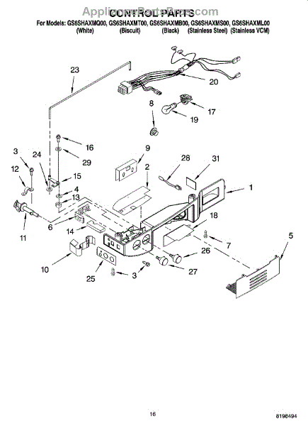 Parts for Whirlpool GS6SHAXMQ00: 10 - Control Parts