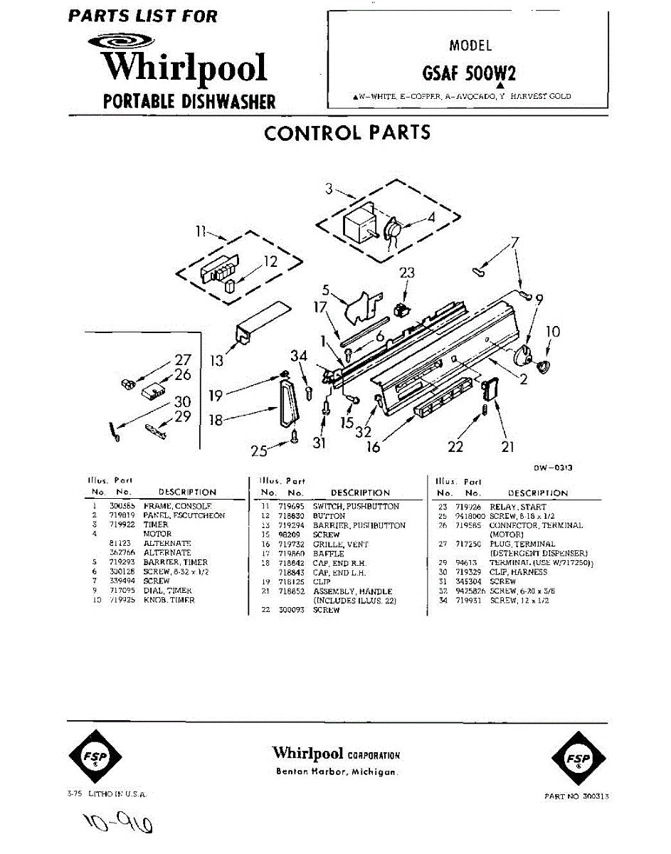 Parts for Whirlpool GSAF500W2: 01 - Control Parts