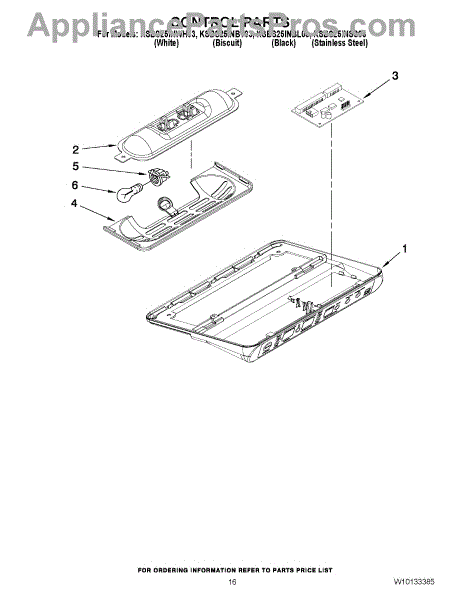Parts for Kitchenaid KSBS25INBT03: 10 - Control Parts