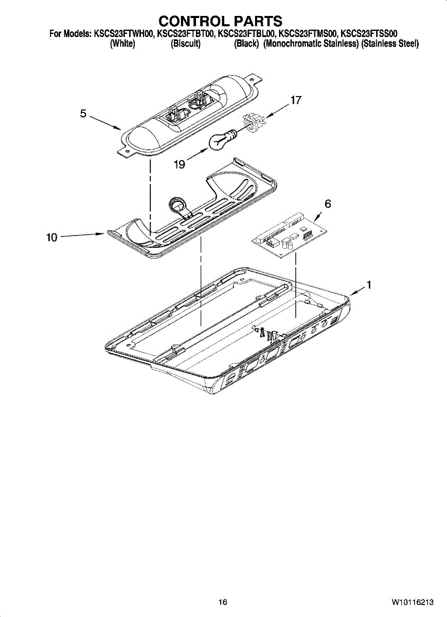 Parts for Kitchenaid KSCS23FTWH00: 10 - Control Parts