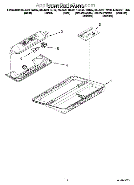 Parts for Kitchenaid KSCS25FTSS02: 10 - Control Parts