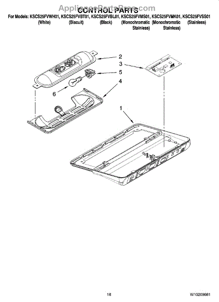 Parts for Kitchenaid KSCS25FVWH01: 10 - Control Parts