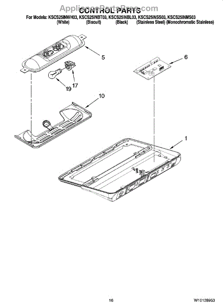 Parts for Kitchenaid KSCS25INWH03: 10 - Control Parts