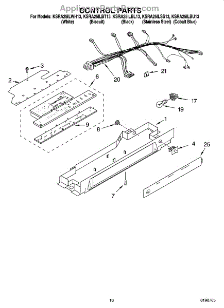 Parts for Kitchenaid KSRA25ILBU13: 10 - Control Parts