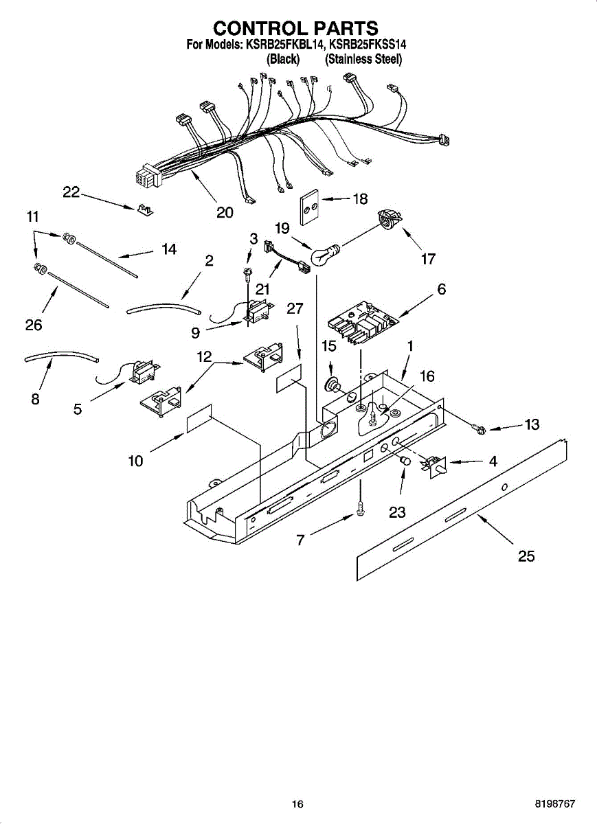 Parts for Kitchenaid KSRB25FKBL14: 10 - Control Parts