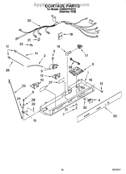 Parts for Kitchenaid KSRD22FKST19: 11 - Control Parts
