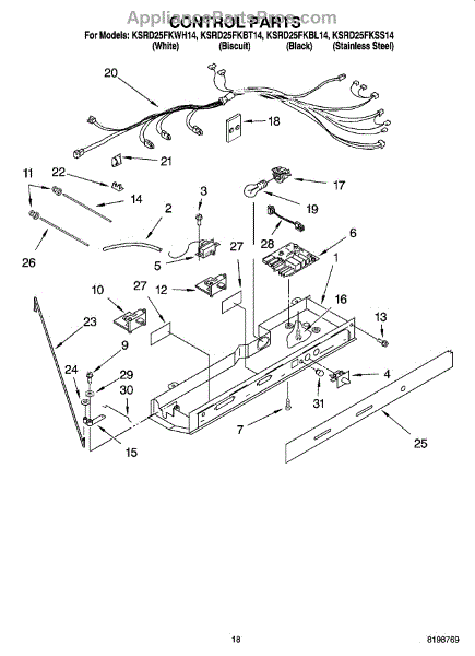 Parts for Kitchenaid KSRD25FKBT14: 11 - Control Parts