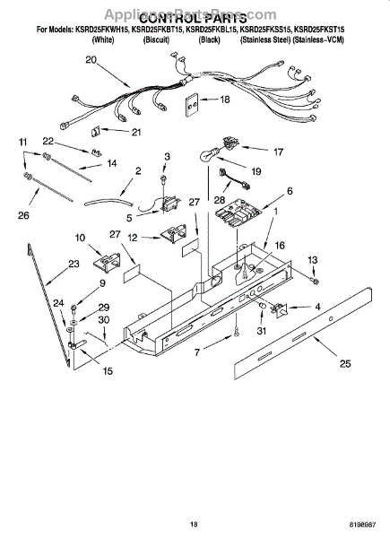Parts for Kitchenaid KSRD25FKWH15: 11 - Control Parts