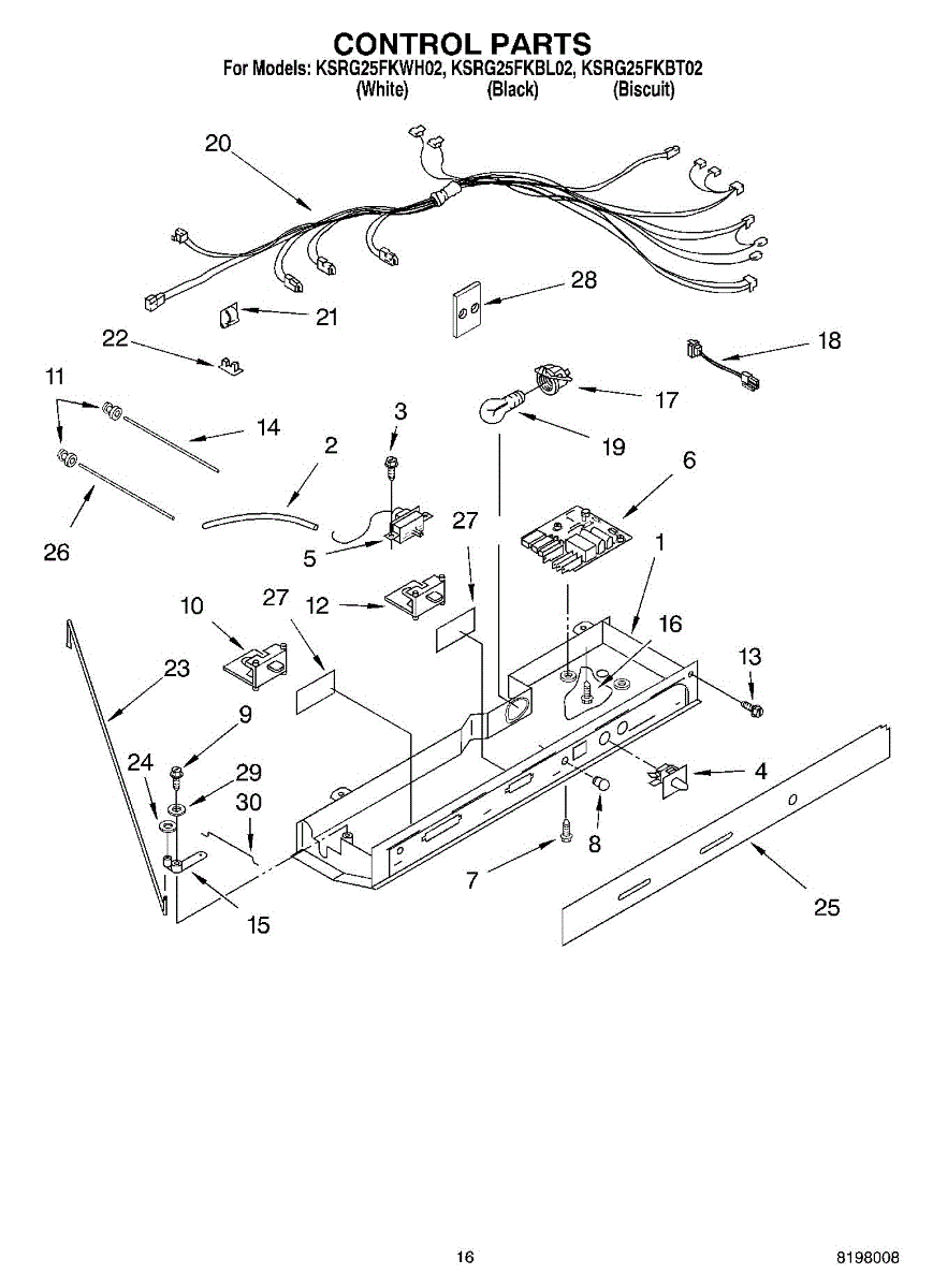 Parts for Kitchenaid KSRG25FKBT02: 10 - Control Parts