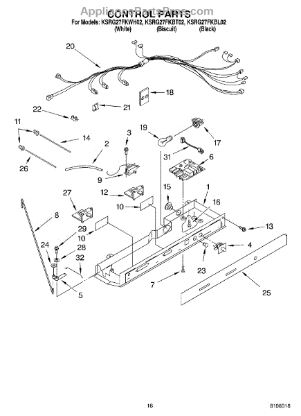 Parts for Kitchenaid KSRG27FKBT02: 10 - Control Parts