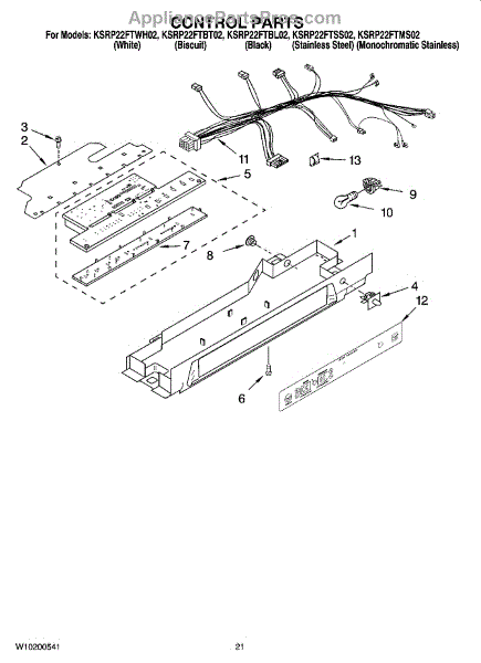 Parts for Kitchenaid KSRP22FTBL02: 12 - Control Parts, Optional Parts (Not Included) Parts