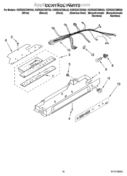 Parts for Kitchenaid KSRS25CSBT02: 10 - Control Parts