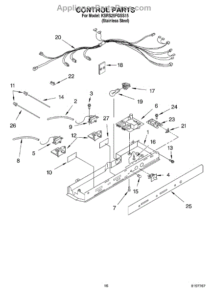 Parts for Kitchenaid KSRS25FGSS15: 10 - Control Parts